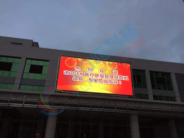 P6户外LED大屏幕成功点亮梅州某县人民医院。感谢客户对我公司的支持和信任,本项目由李佰菊经理(手机13424380237)承接!本次采用的是P6户外防水箱体,一共50个。